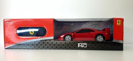 Rastar Ferrari F40 Bestuur jouw eigen Ferrari F40 met gedetailleerd interieur. De sportauto is een replica van het echte voertuig en gemaakt op een schaal van 1:24. Met de afstandsbediening bepaal jij welke kant de auto op gaat en met welke snelheid. De auto werkt op drie AA-batterijen (niet inbegrepen) en de afstandsbediening werkt op twee AA-batterijen (niet inbegrepen). Specificaties: Geslacht: jongens Kleur: rood Materiaal: kunststof Frequentie: 2,4 GHz Schaal: 1:24 Gewicht: 185,4 gram Afmetingen: 187 x 87 x 48 mm (L x B x D) Batterijen auto: 3 AA-batterijen (niet inbegrepen) Batterijen afstandbediening: 2 AA-batterijen (niet inbegrepen) Maximale snelheid: 7 km/h Leeftijd: vanaf 6 jaar Inhoud: 1 Auto 1 Afstandsbediening Instructies