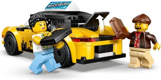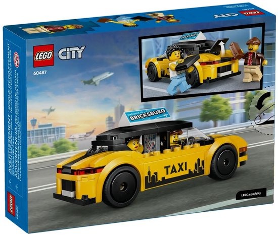 LEGO® City Gele taxi (60487). Deze leuke bouw- en speelset bevat een gele taxi met een modern elektrisch voertuigontwerp, een kofferbak die open kan met bagage en een motorkap die kan worden opgetild om een 'elektrische' motor te onthullen. Dit coole autospeelgoed wordt geleverd met bedrukte stickers, waaronder een GPS-scherm, taxilogo, dakreclame en accu. Kinderen kunnen het dak ook verwijderen om de minifiguren van de taxichauffeur en toerist in de taxi te plaatsen voor fantasierijk spel en om verhalen te vertellen. Deze bouwbare 'elektrische' speelgoedauto is een geweldig verjaardagscadeau of een leuke verrassing voor kinderen, jongens en meisjes. Combineer met andere sets uit het LEGO City assortiment (apart verkrijgbaar) voor nog meer spannende avonturen. Met de LEGO Builder app kunnen kinderen genieten van intuïtief bouwplezier. Bouw met 3D-instructies, zoom in op je model en draai het terwijl je je voortgang bijhoudt – allemaal vanuit de app. De set bevat 122 onderdelen.